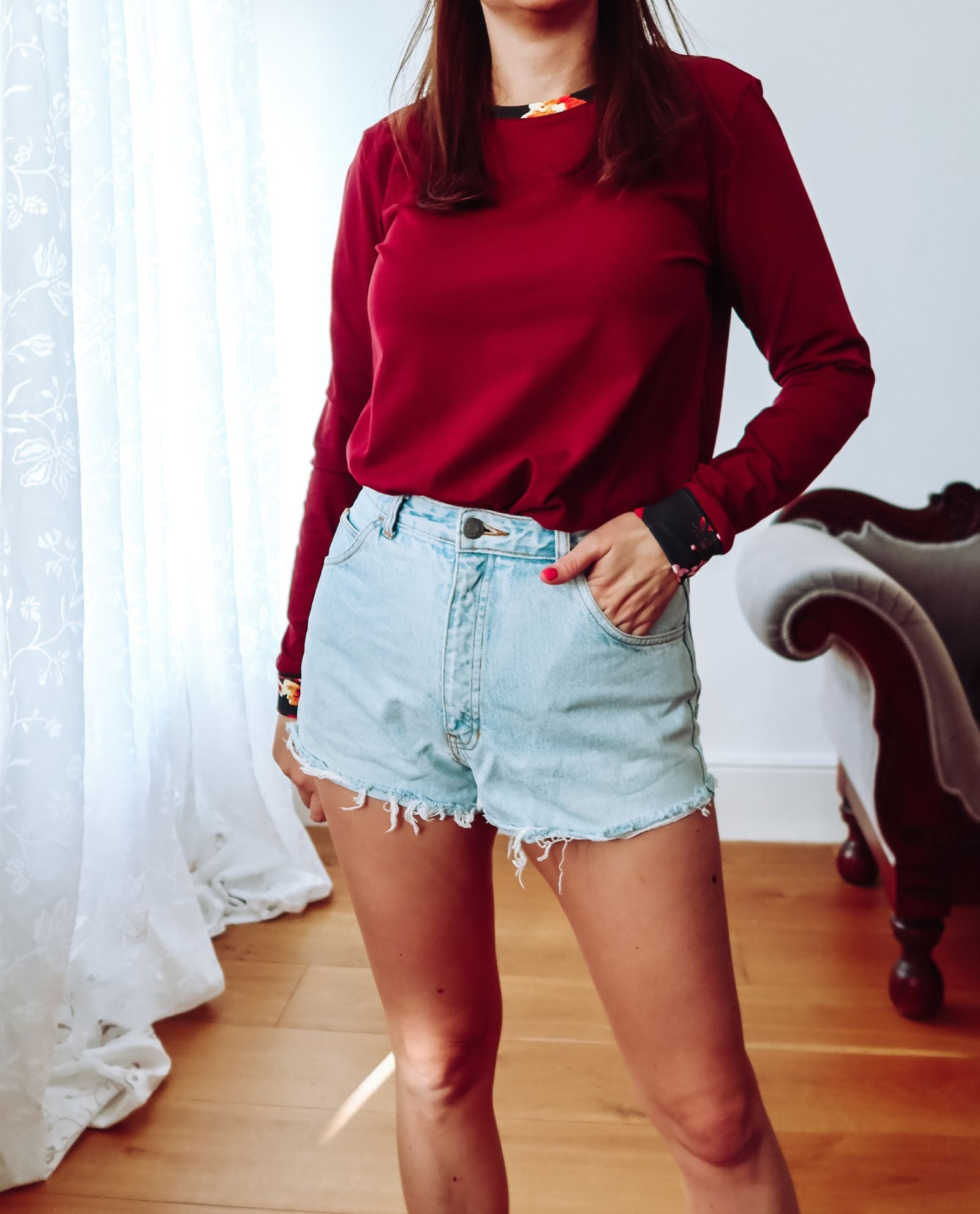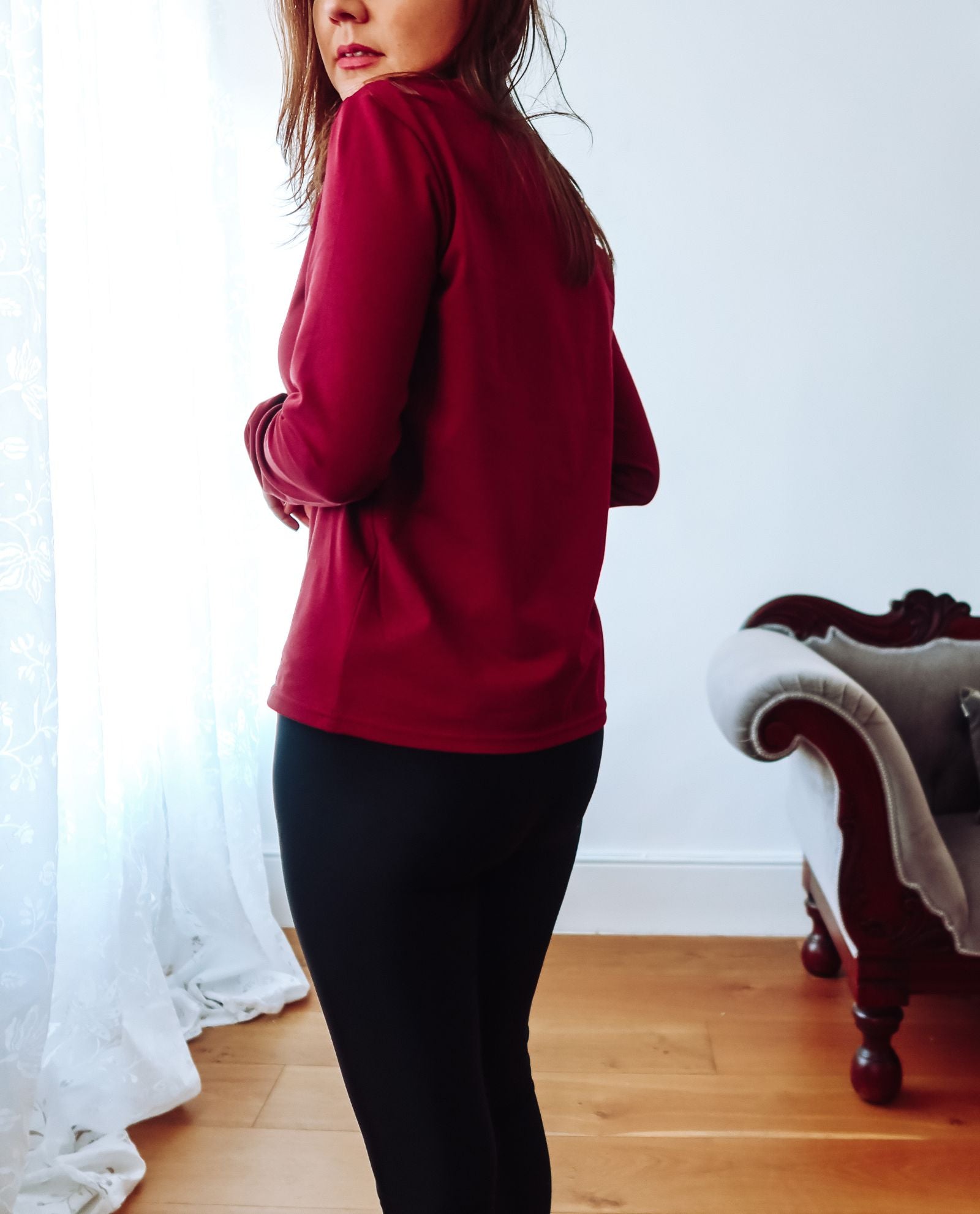 Burgundy Long Sleeve Cotton Top