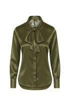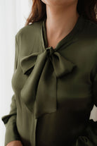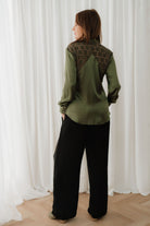 The definition of timeless femininity, the Olive Green Silk Bow Blouse is a wardrobe staple designed to elevate both workwear and weekend looks. Cut from shimmering silk satin and detailed with beautiful floral lace, she brings together elegance and versatility in one effortless piece.