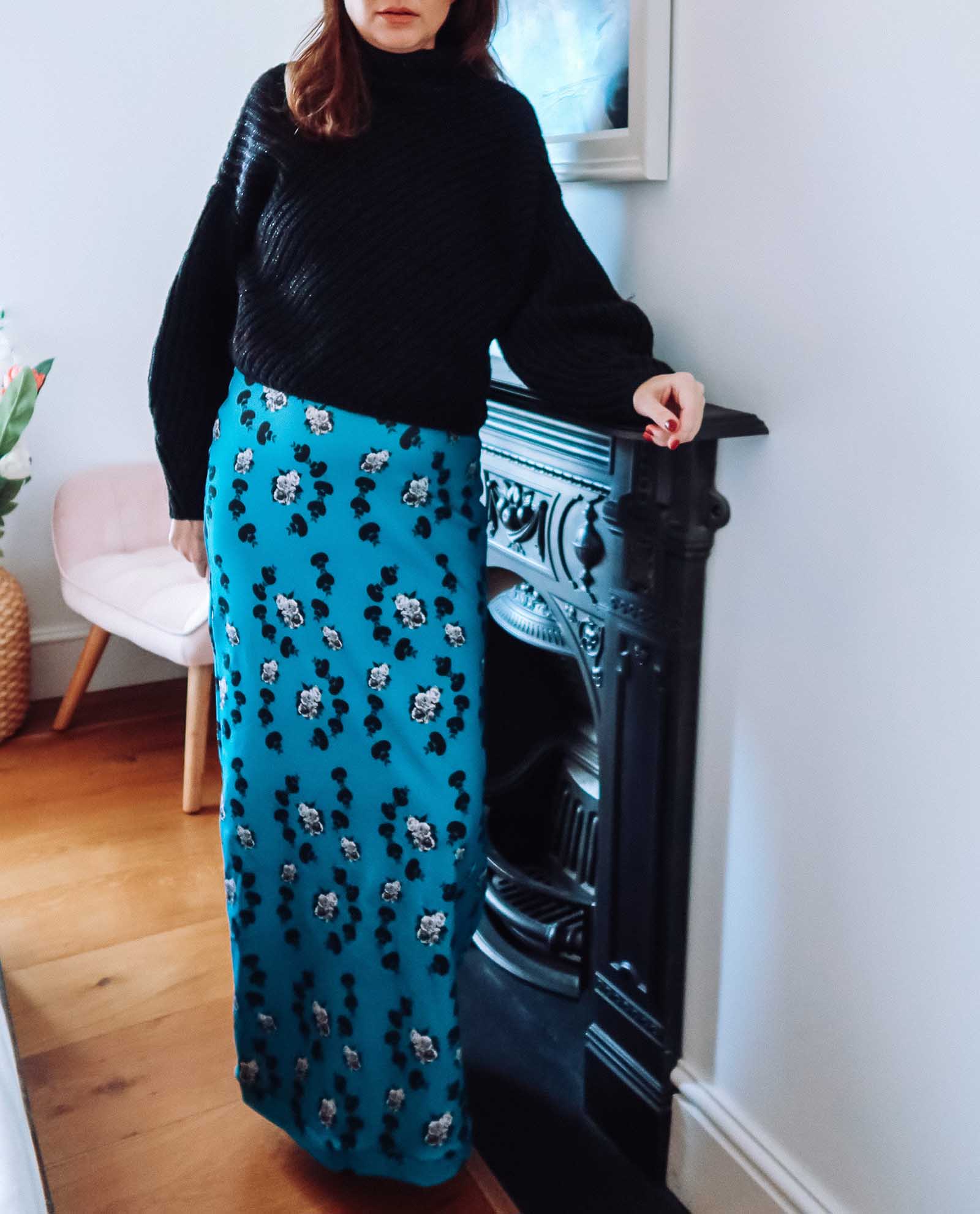 The definition of effortless, the Teal Floral Maxi Jersey Skirt is the wardrobe hero you won’t want to be without. Cut from a mid-weight cotton jersey this simply pulls on. Flattering in all the right places, the wide tailored waistband can be folded down for versatility, shortening or lengthening the skirt. Gently falling away at the hips volume is added in for ease of movement.