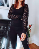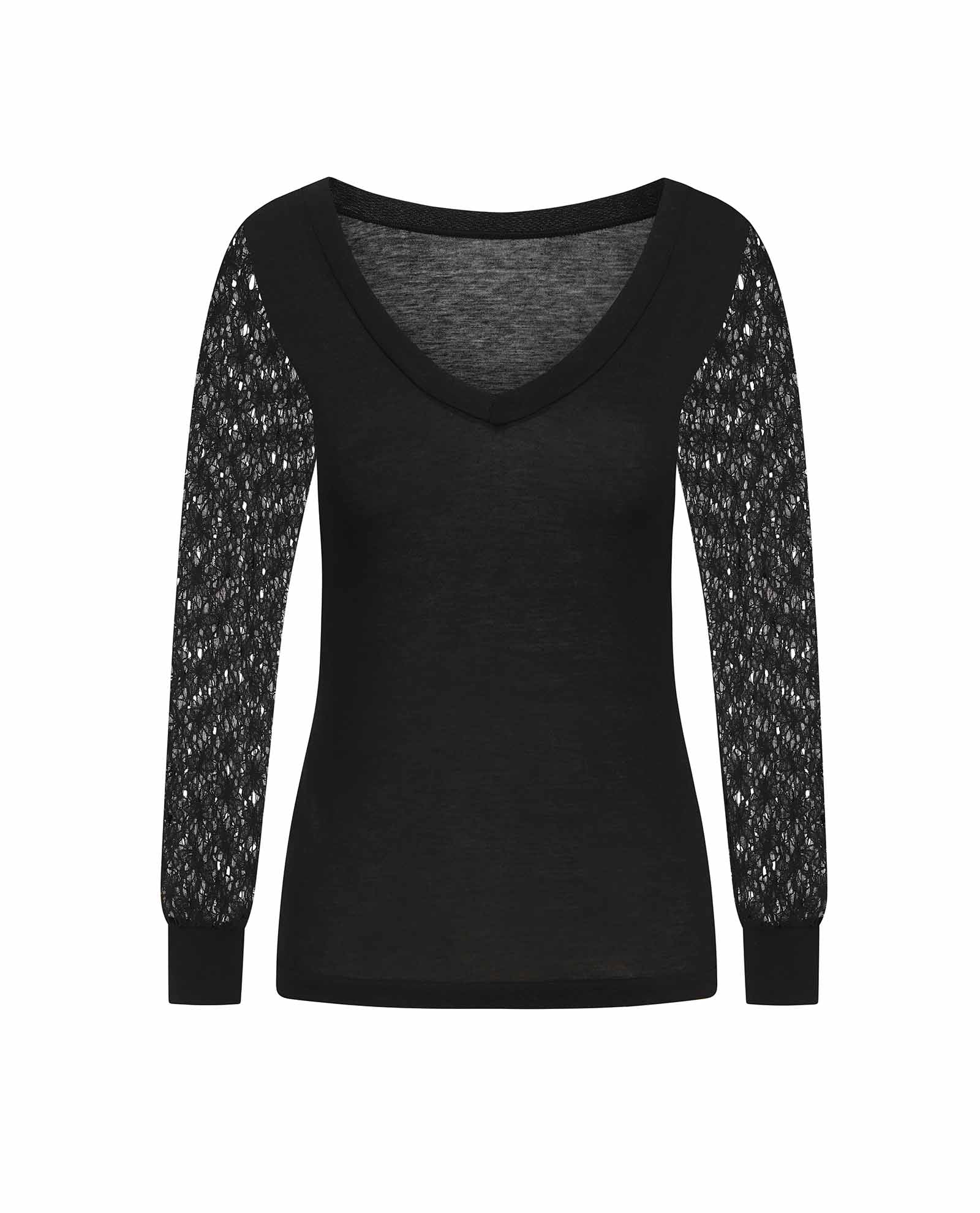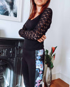The ultimate every day essential meet RIO. Made from a silky soft Lyocell cotton blend jersey in black, this lightweight top has a luxurious feel. A fitted V-neck design featuring lace sleeve detailing. Dress up or dress down this beautiful black jersey top is the perfect wardrobe staple.