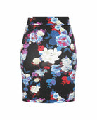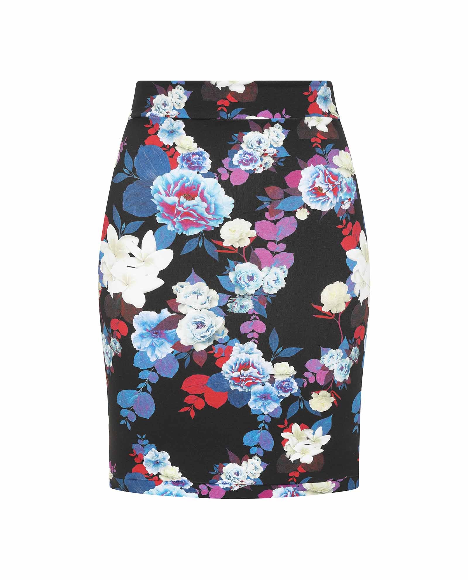 The Black Floral Jersey Skirt pairs beautifully with our SCD tops. The feminine design is cut from a bespoke floral print on cotton jersey. Tailored to perfection this is a body sculpting fit with a wide waistband. The length is a long mini skirt can be worn high waisted or on the hip depending on styling preference.