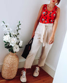 This is no ordinary vest top, we’ve taken the everyday essential and given it our SCD twist. An elegant scoop neckline with a wide shoulder seam ensuring that your bra strap won't show. Cut from a mid-weight cotton jersey in a bespoke digital red floral print. It’s a wardrobe staple that is chic and feminine and perfect for effortless layering. Pair with the Red Floral Maxi Jersey Skirt for an all-in-one outfit.