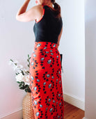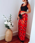 The definition of effortless, the Red Floral Maxi Jersey Skirt is the wardrobe hero you won’t want to be without. Cut from a mid-weight cotton jersey this simply pulls on. Flattering in all the right places, the wide tailored waistband can be folded down for versatility, shortening or lengthening the skirt. Gently falling away at the hips volume is added in for ease of movement.