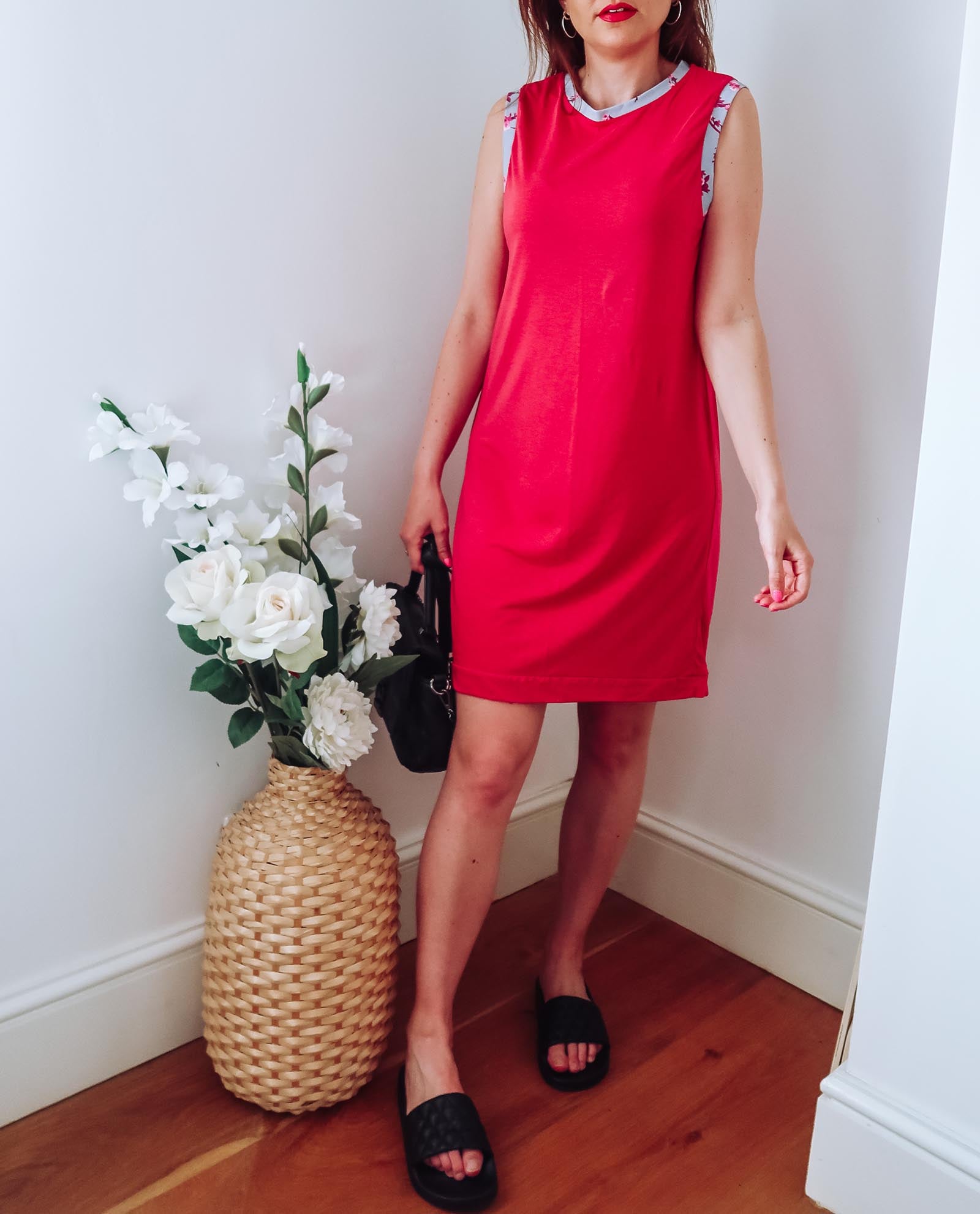 ANNIE- the relaxed super soft cotton Lyocell blend T-shirt dress is the ultimate everyday essential. Throw-on and go it's a failsafe summer's day dress. Whether you're off on holiday or on the school run the Raspberry Pink T-Shirt Dress is effortless dressing. Crafted from stretchy, light-weight and eco-friendly jersey, featuring bespoke digital print detailing around the neckline and sleeveless design.