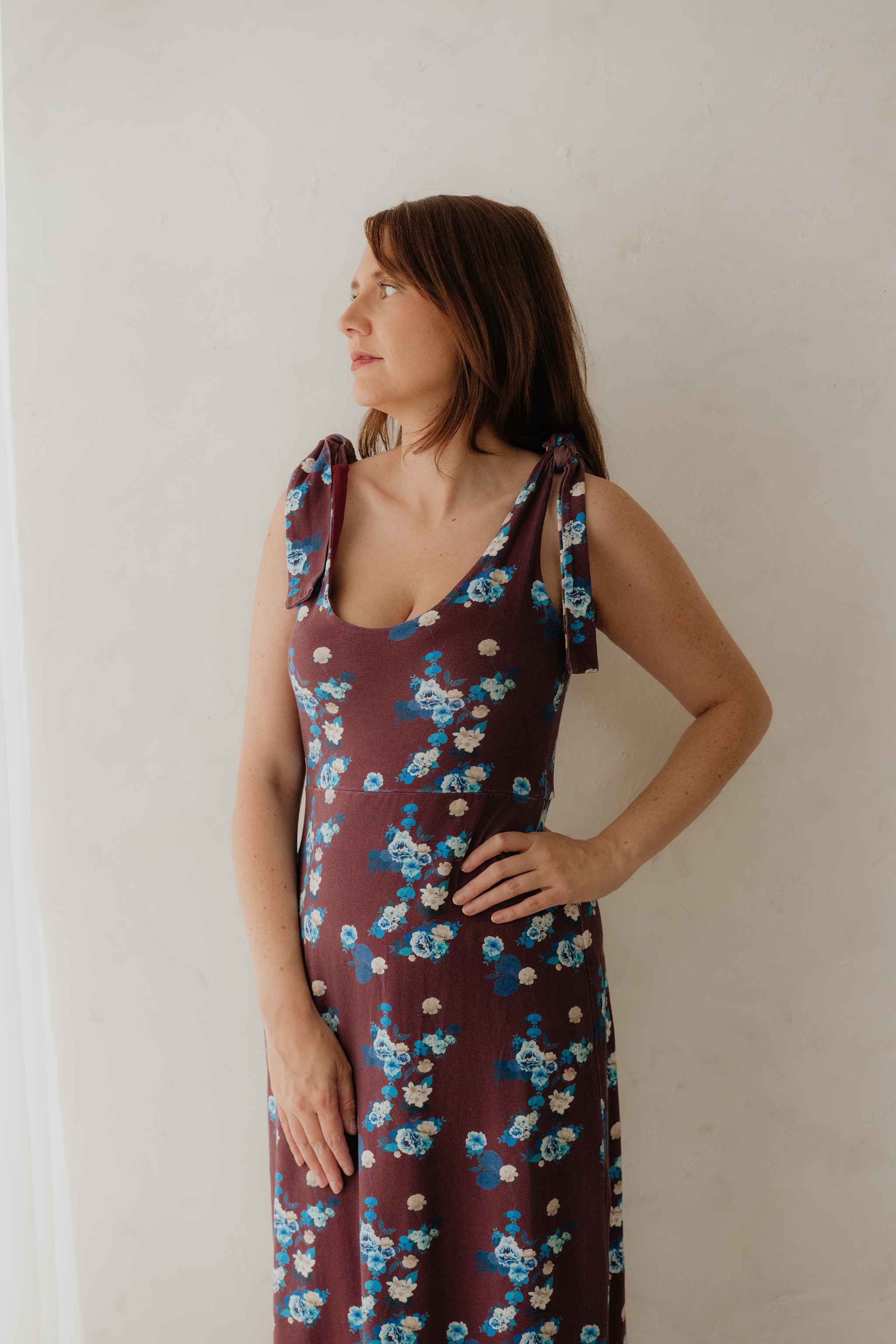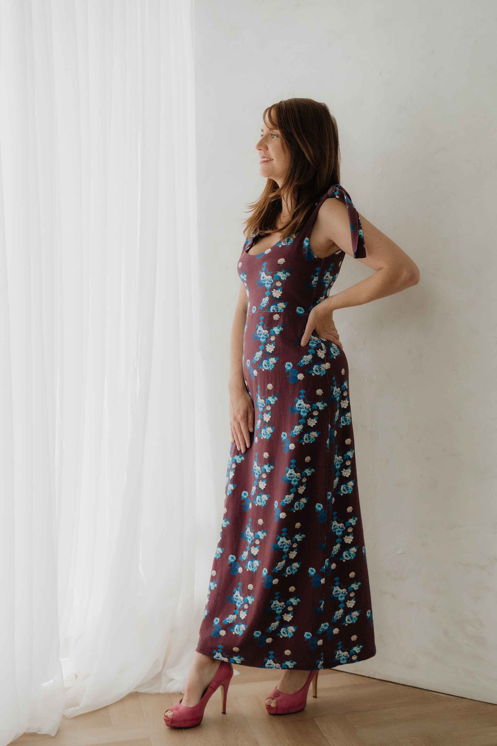 Perfect for holidays, summer parties, or wedding season. EVA is crafted from soft, mid-weight cotton jersey in Sophie’s bespoke maroon floral print. With adjustable self-tie straps and a flattering silhouette, she’s designed to evolve with you bump-friendly, bloat-friendly, and always comfortable. Style barefoot on the beach, layered on cooler days, or dressed up for special occasions. A timeless piece you’ll reach for again and again.